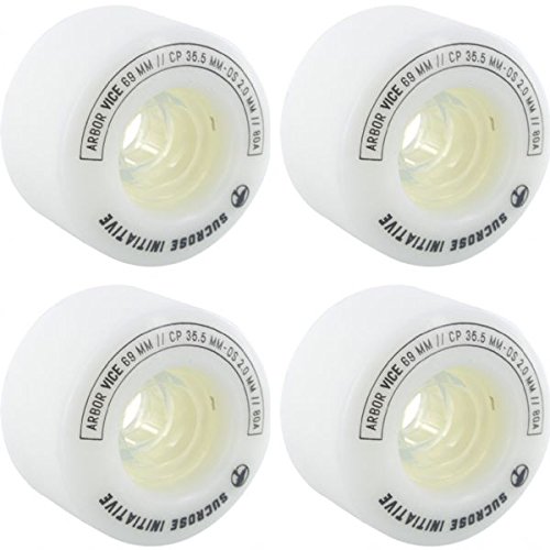 -. Feature : One (1) set of 69mm Arbor Skateboards Vice Skateboard Wheels; includes four (4) wheels / Diameter: 69mm / Durometer: 80a / Color: White