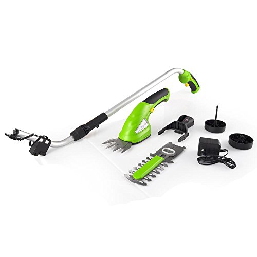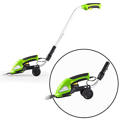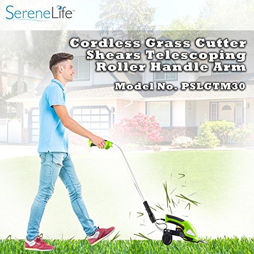 Versatile & cordless cutting ability - landscaping made easy: hassle-free design - 2-in-1 system with quick change blades - handheld cutter detaches for convenience - includes grass cutting blade & hedge trim blade - easy-to-use 'glide-cut' technology - built-in rechargeable battery - lightweight, portable & powerful - comfortable handheld grip - simple one-handed operation - telescoping/height adjustable handle shaft, 24''-37'', integrated 'blade guard' for precision & control - safety power lock switch - convenient telescoping handle with Roller wheels - includes battery wall charger adapter - assembled size: 38.2'' x 3.3'' x 36.0''.Feature