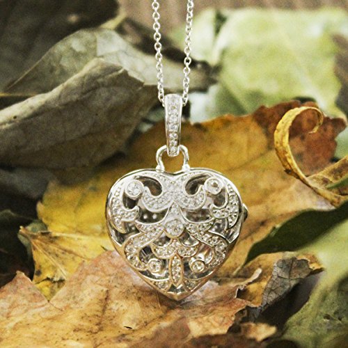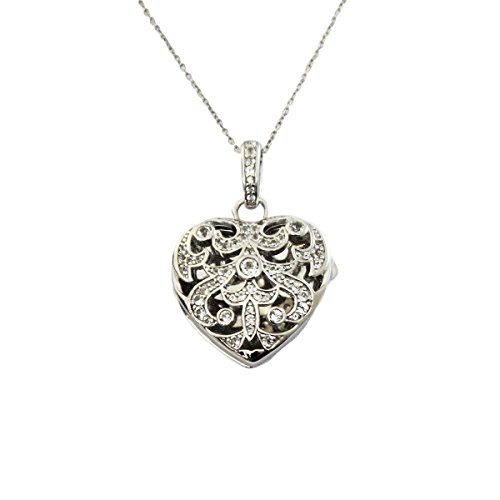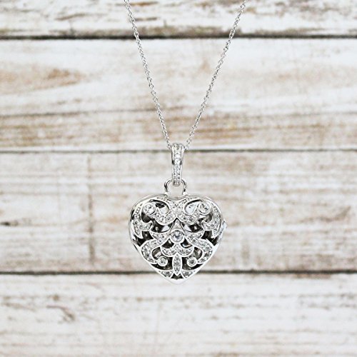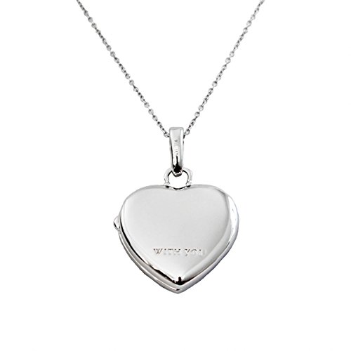 Intricate and elegant, the sterling silver Deirdre locket features sparkling white topaz stones and is sure to capture the attention of everyone in the room. This gorgeous locket can hold a piece of your heart when you tuck a special photo inside. One of our favorite girls, Deirdre, just left for college and she's been part of the With You family from day one, supporting our Kickstarter campaign and working for us at some of our very first shows. She is bright, kind and a ball to be around. And, it gives us so much happiness to name one of our newest and shiniest photo lockets after her. She's an only child like our girl, Olivia, and we pray every day we can raise our girl as well as this one has turned out. Because of it's size, you can put a photo of a lot of your favorite people inside. Locket measures 24.7 x 26 mm. Includes sterling silver locket pendant with white topaz and sterling silver chain. Available in chain lengths from 18" to 36". Our 18" through 34" necklace chains come standard with a 2" jump ring which may be used to shorten the chain by 2" and allows two length options.Feature