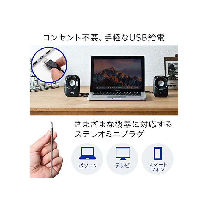 전원을 USB포토부터 공급하는 USB급 전방식의 스피커입니다.AC전원을 필요로 하지 않기 때문에 접속이 예쁘게 성과,간단하게 설치에 옵니다.