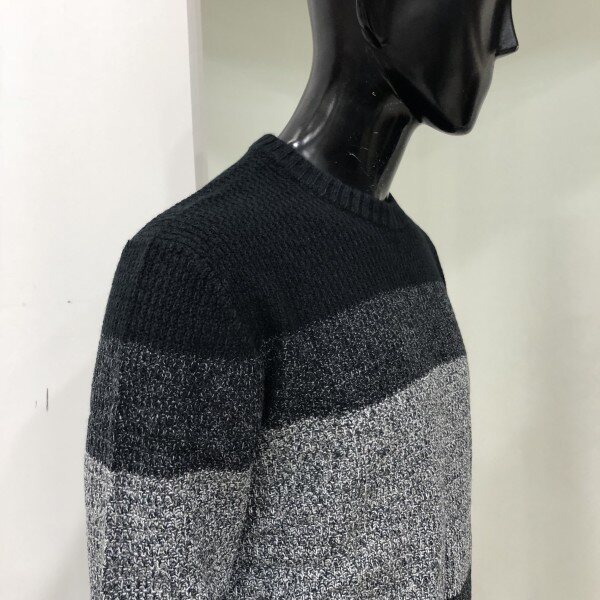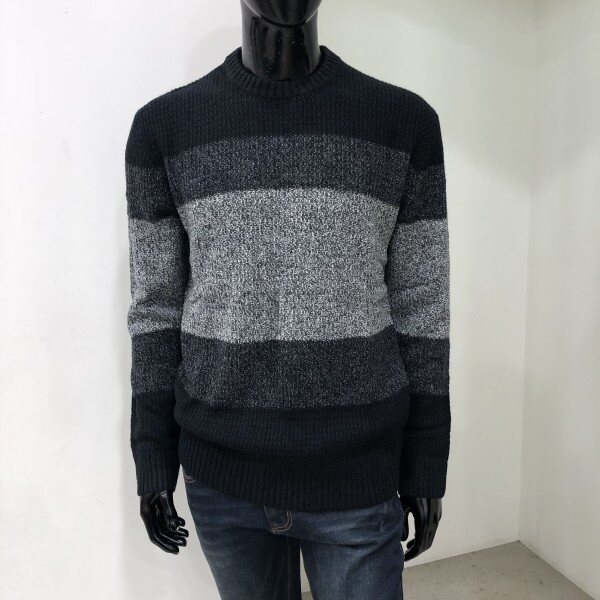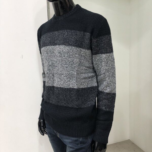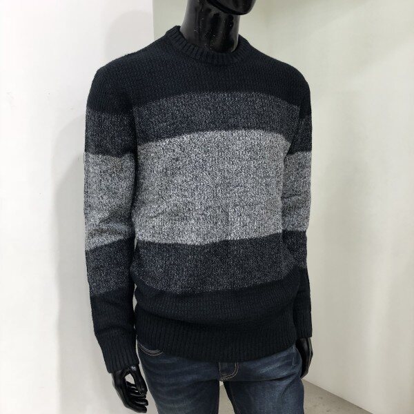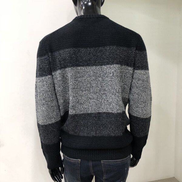 라빙변형 조직을 사용하여 깔끔하며, 중앙에 그라데이션 배색으로 포인트를 주어 캐주얼한 코디가 용이한 라운드넥 스웨터입니다.