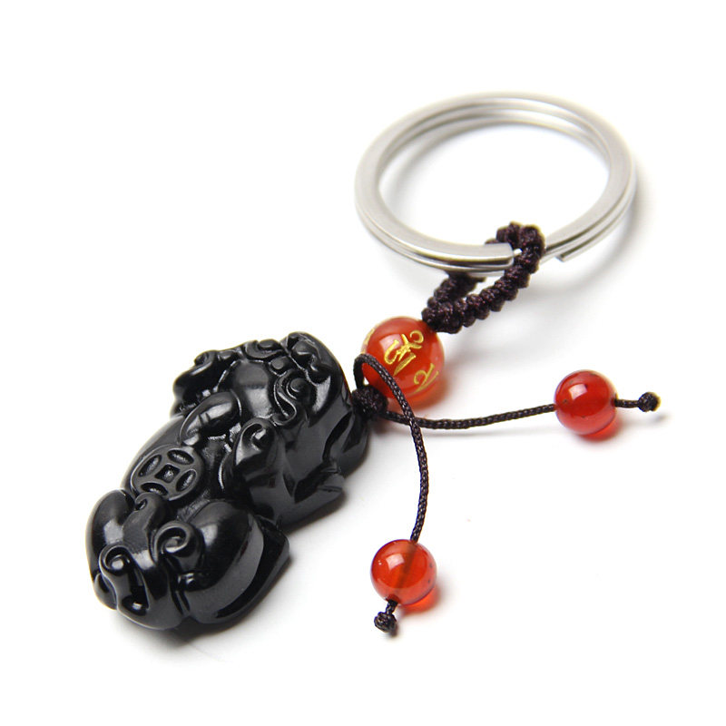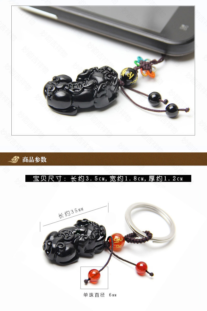 开光黑曜石貔貅钥匙扣款 手机链款 男女款水晶饰品挂件