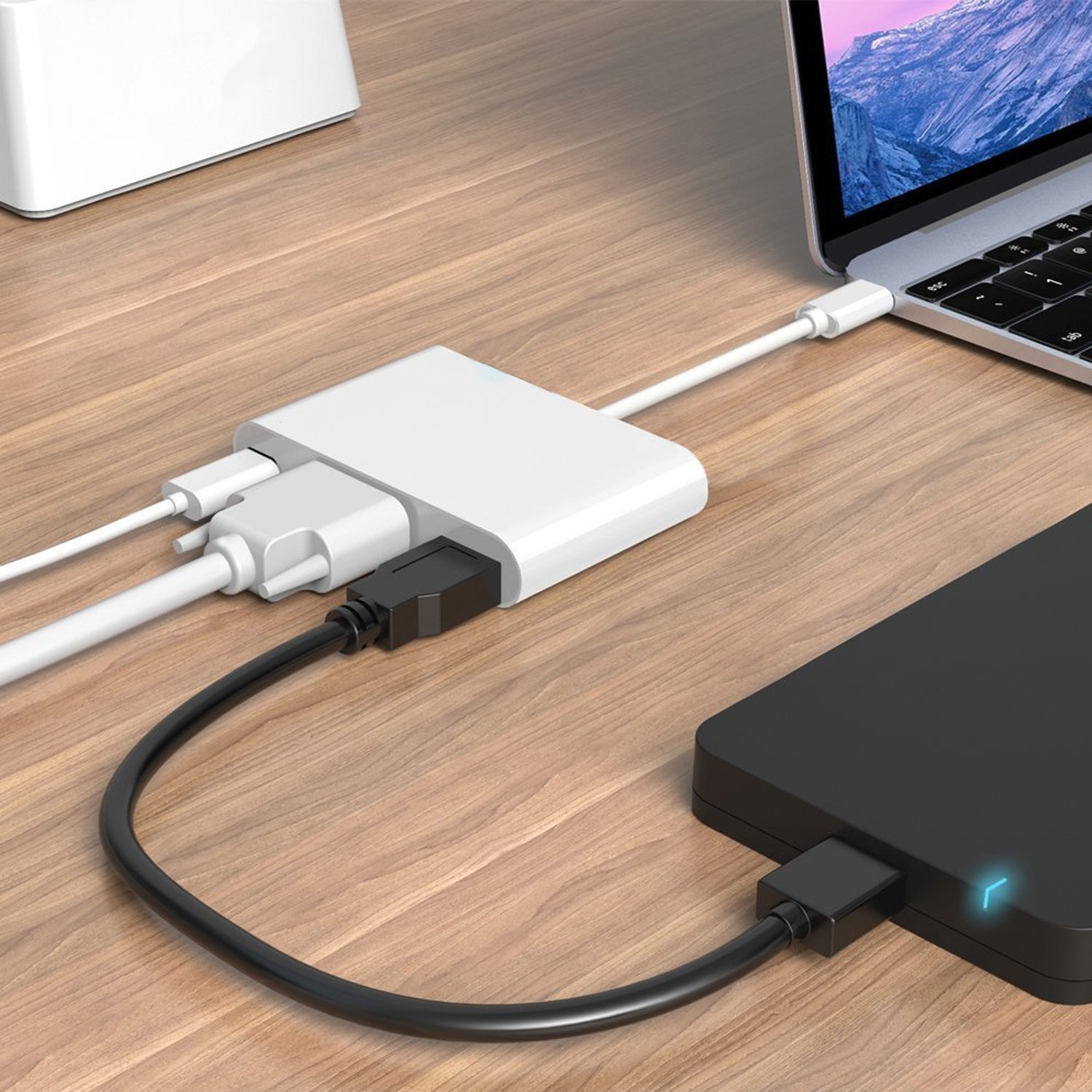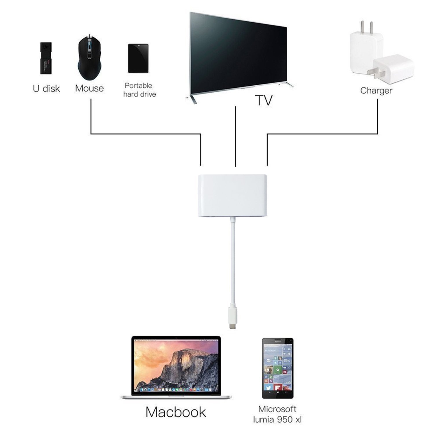 Supports 800 x 600 (SVGA), 1024 x 768 (XGA), 1600 x 1200 (UXGA), 1080 p (all HD), 1920 x 1200 (WUXGA) resolution, MacBook (and other Type C port devices) mirroring to expand on larger monitors.