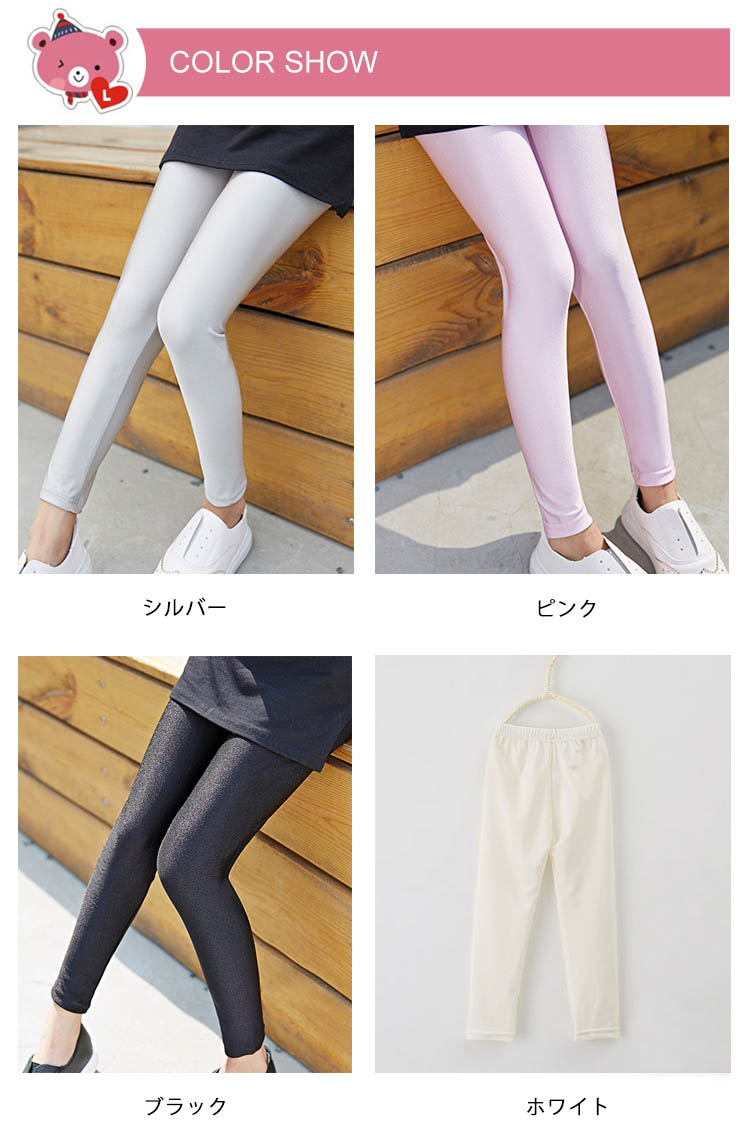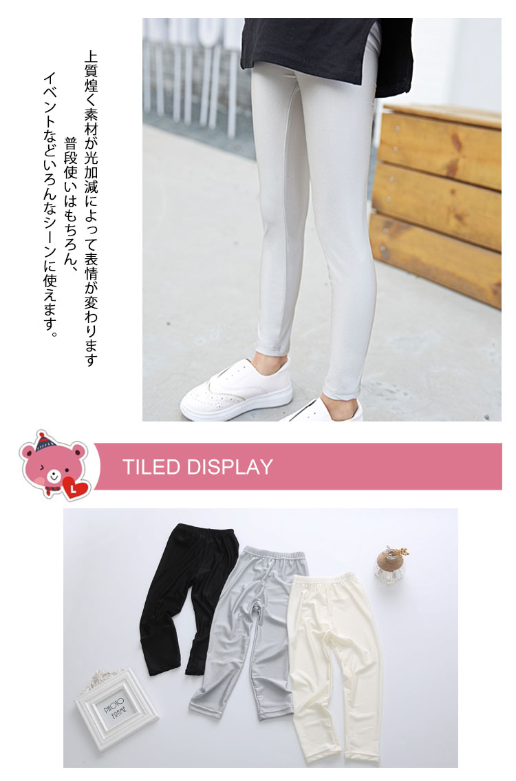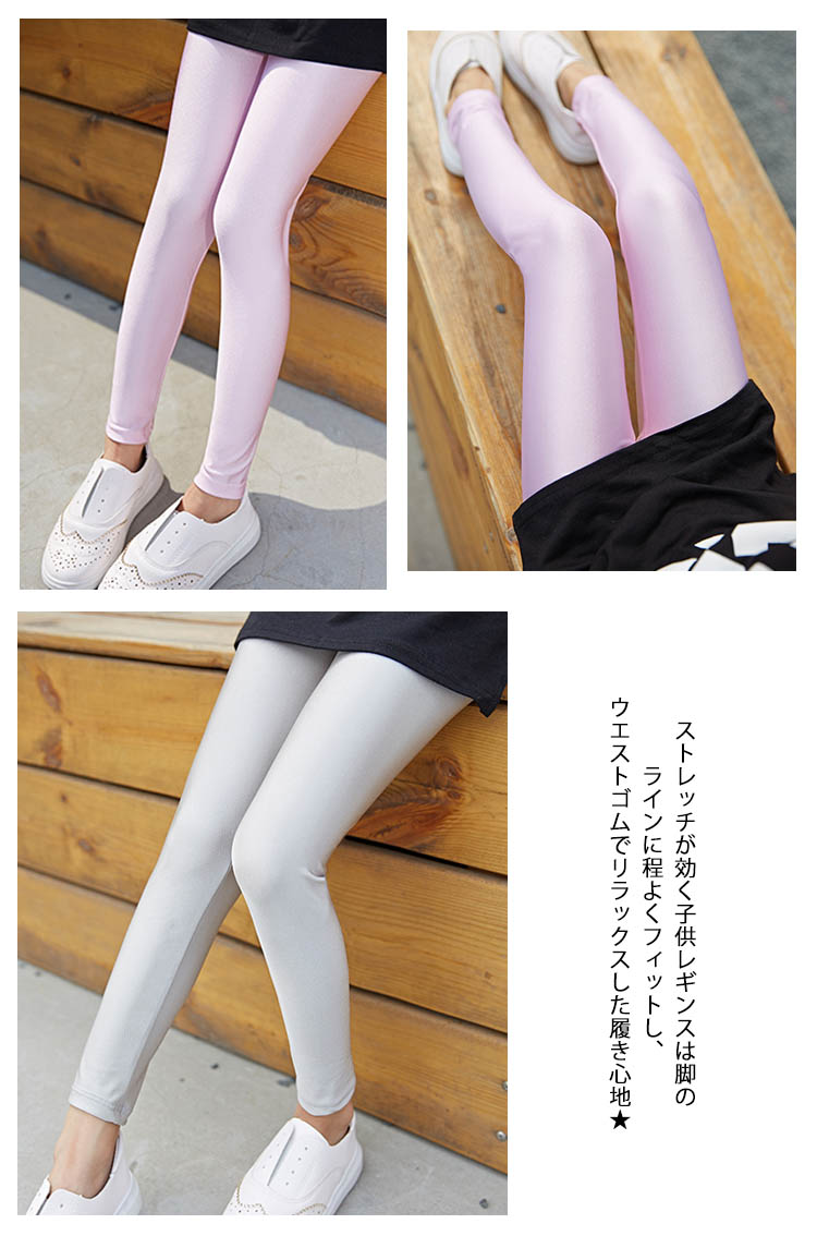 | クールなスタイルに◎子供艶レギンスレザーのようなツヤ感ありながら、レザーより通気性抜群で柔いのがチャームpoint。コーデに取り入れるだけでCOOLなスタイルに!ストレッチが効く子供レギンスは脚のラインに程よくフィットし、ウエストゴムでリラックスした履き心地★ 上質煌く素材が光加減によって表情が変わります普段使いはもちろん、イベントなどいろんなシーンに使えます。 | |