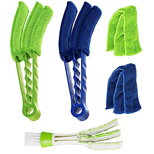 Microfiber Blind Duster, AICMEI Set of 2 Cleaner Brush Dust Collector Cleaning Cloth Toolfor Keyboard Window Leaves Blinds Shutter, With 2 Extra Microfiber Sleeves and 1 Brush