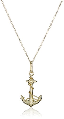 14k yellow gold necklace featuring small anchor pendant suspended from rope chain