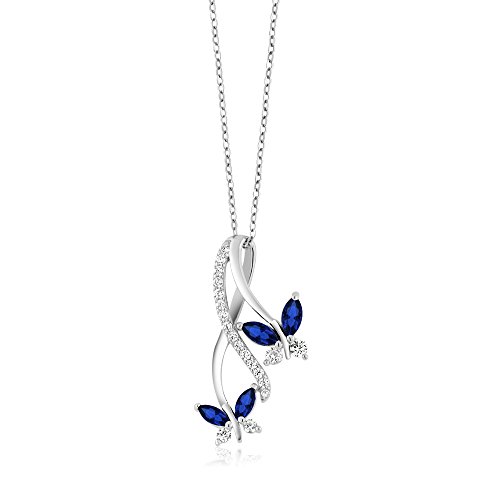 MEASUREMENT - Center Stone: 6x3 mm, Small Stones: 2.5 mm and 1.5 mm; Created Blue Sapphire Pendant Crafted in 925 Sterling Silver With an 18 Inch 925 Sterling Silver Chain