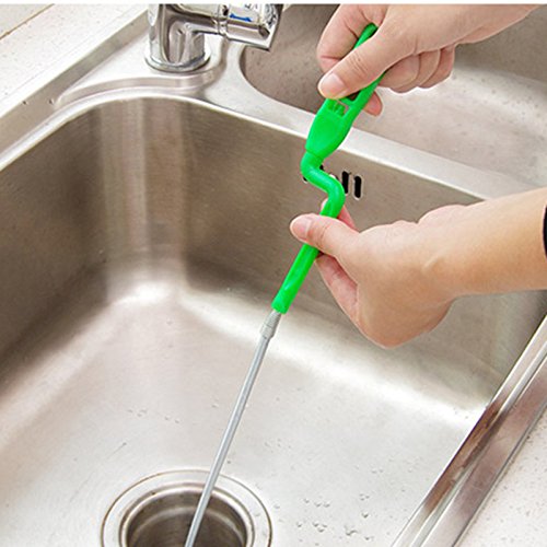 -. Feature : The quick and easy way to clear slow-moving drains due to hair clogs in kitchen. / Just slide the product down the drain and rotating the handle, then it will remove the hair, garbage. / A specially flexible designed head to unclog the drain. / There is no need to use chemicals or toxic to clean the drain and clog. / Perfect for sewers clear, household cleaning sink, drain blockades, hair pipe cleaning.