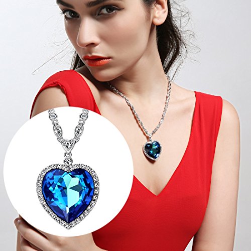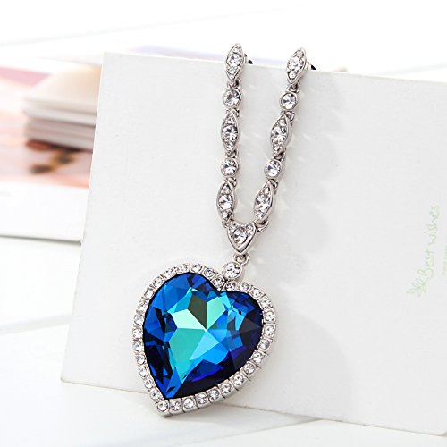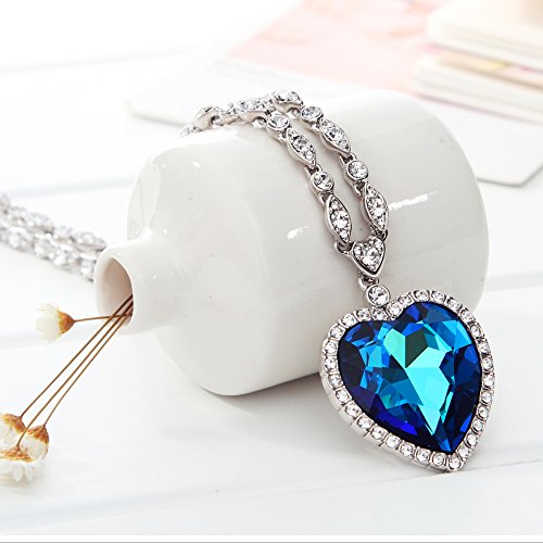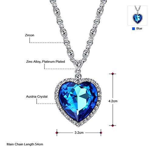Main gem: Blue Crystal Made with Swarovski Elements White Cubic Zirconia. Pendnat size:1.7inch * 1.3inch Chain length:21.26 inch