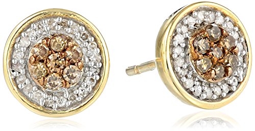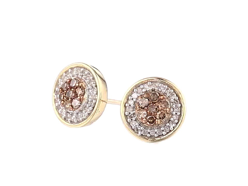 10K Yellow Gold Champagne and White Diamond Round Stud Earrings (1/4 cttw)