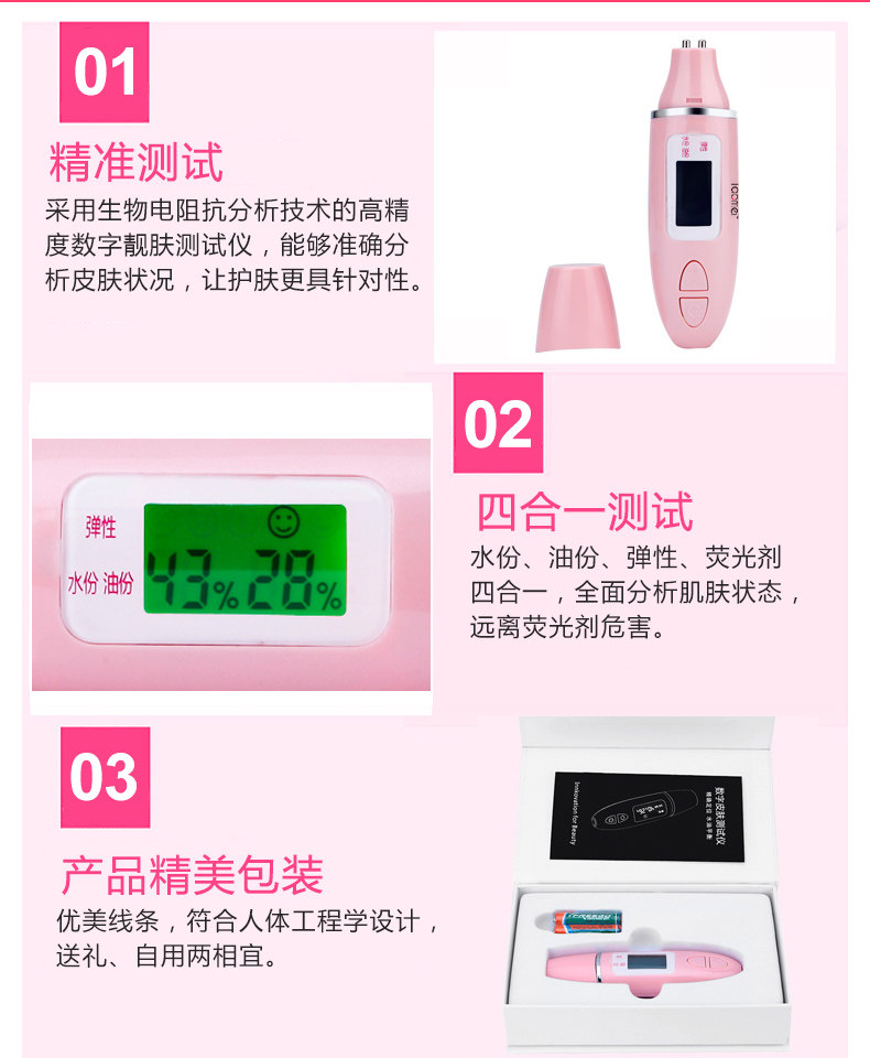 • Skin testing instrument high precision skin moisture test pen oil sub face elastic three in one measuring instrument全新、
