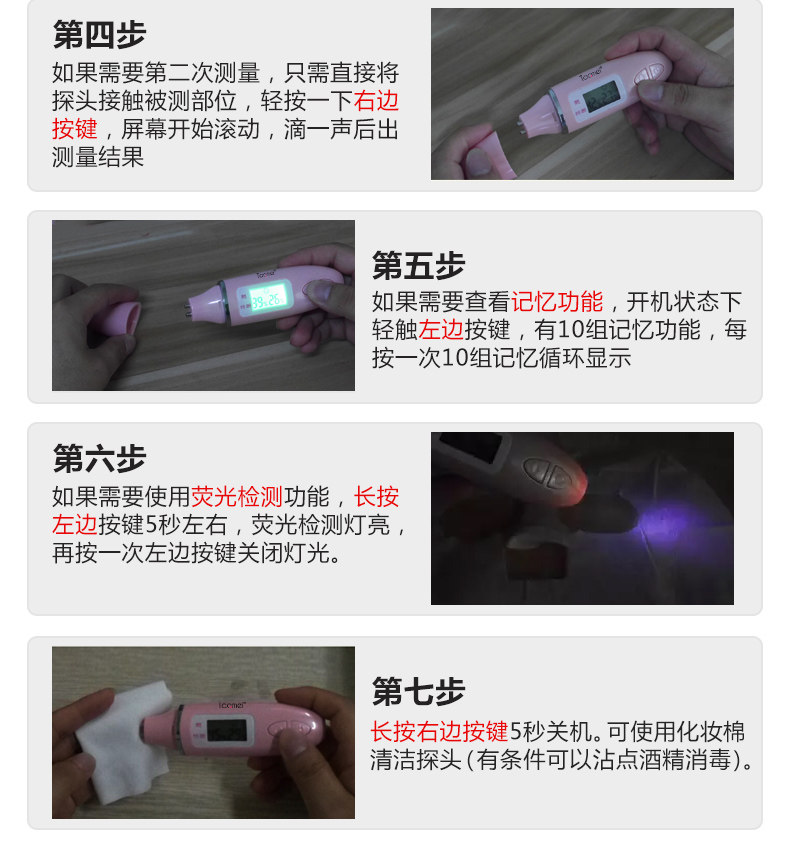 • Skin moisture / oil / fluorescent,