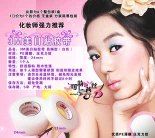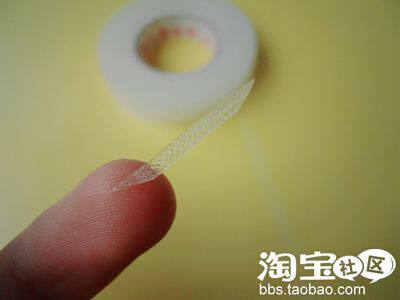影楼、专业化妆师的化妆箱里绝对必备的一款双眼皮胶带。市场上出售的那些已经裁好的双眼皮贴,总不是合适每个人的哦,因为每个人的眼睛都不同,所以还是要根据自己的眼部特点来剪裁哦:)