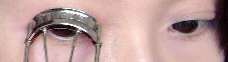接下来这步不可缺少。请一定要夹翘你的睫毛。一定要从睫毛根部夹起(用3段式的夹法,从睫毛根部夹到睫毛末端,一边夹手一边往上翘,整根睫毛都夹到。这样自己的睫毛可以翘起一整天也不会塌下来)。让你的真睫毛翘起来,这样你的真睫毛才能和假睫毛浑然一体。(自己本身的睫毛不用涂睫毛膏,只要夹翘就可以。然后就把所有的眼妆都画好,最后贴假睫毛!!)