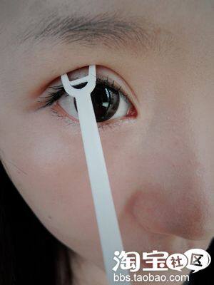 接着呢要用到的就是Marie Beauty里面有配置这样一条双眼皮辅助小样,只要在睁开的时候把它贴住眼皮往上撑就可以了~