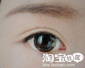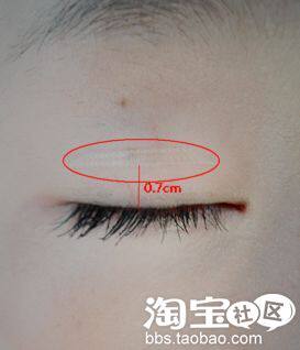 然后就是把剪好的双眼皮胶贴在距离睫毛约0.7厘米的位置,不过每个人的双眼皮线都不大相同,有的长点有的短点,也可以根据自己改的~