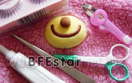 工具:剪刀、胶水、假睫毛、眉夹/睫毛辅助器