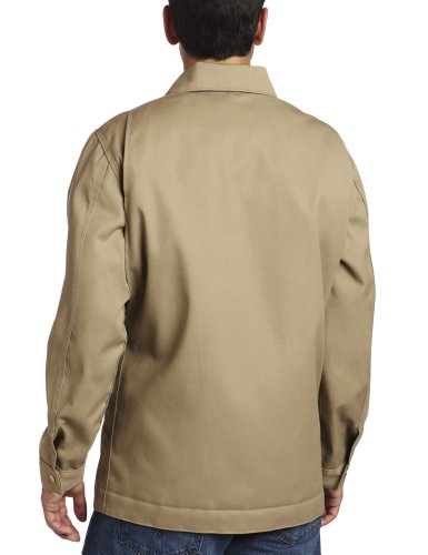 -. Feature : 8.5-ounce, 65% polyester/35% cotton twill / Wrinkle-resistant fabric with stain-repel-and-release finish / Midweight quilt lining in body, nylon lining in sleeves