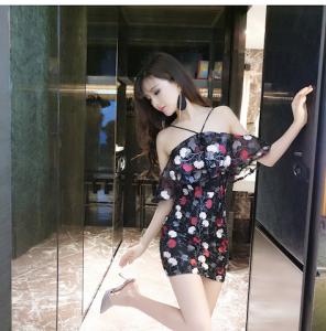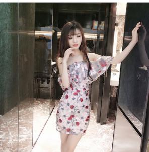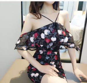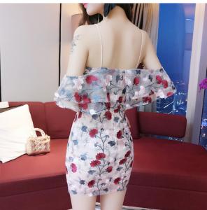 オフショルワンピース フラワーデザイン セクシー 大人ドレス ナイトドレス プチプラ フリル ミニ丈タイト