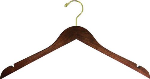-. Feature : 17" Length Flat Shirt/Dress Hangers / Rich Walnut Finish w/ Brass Hook / Notched Shoulders for Hanging Straps / Flat Design Saves Closet Space / Sold in Packs of (25) Hangers