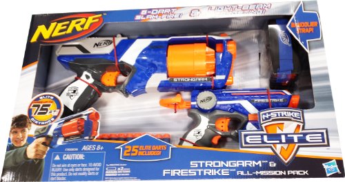 -. Title : NERF N-Strike Elite: Strongarm, Firestrike Blasters, Bandolier and 25 ammo refills ALL-MISSION PACK