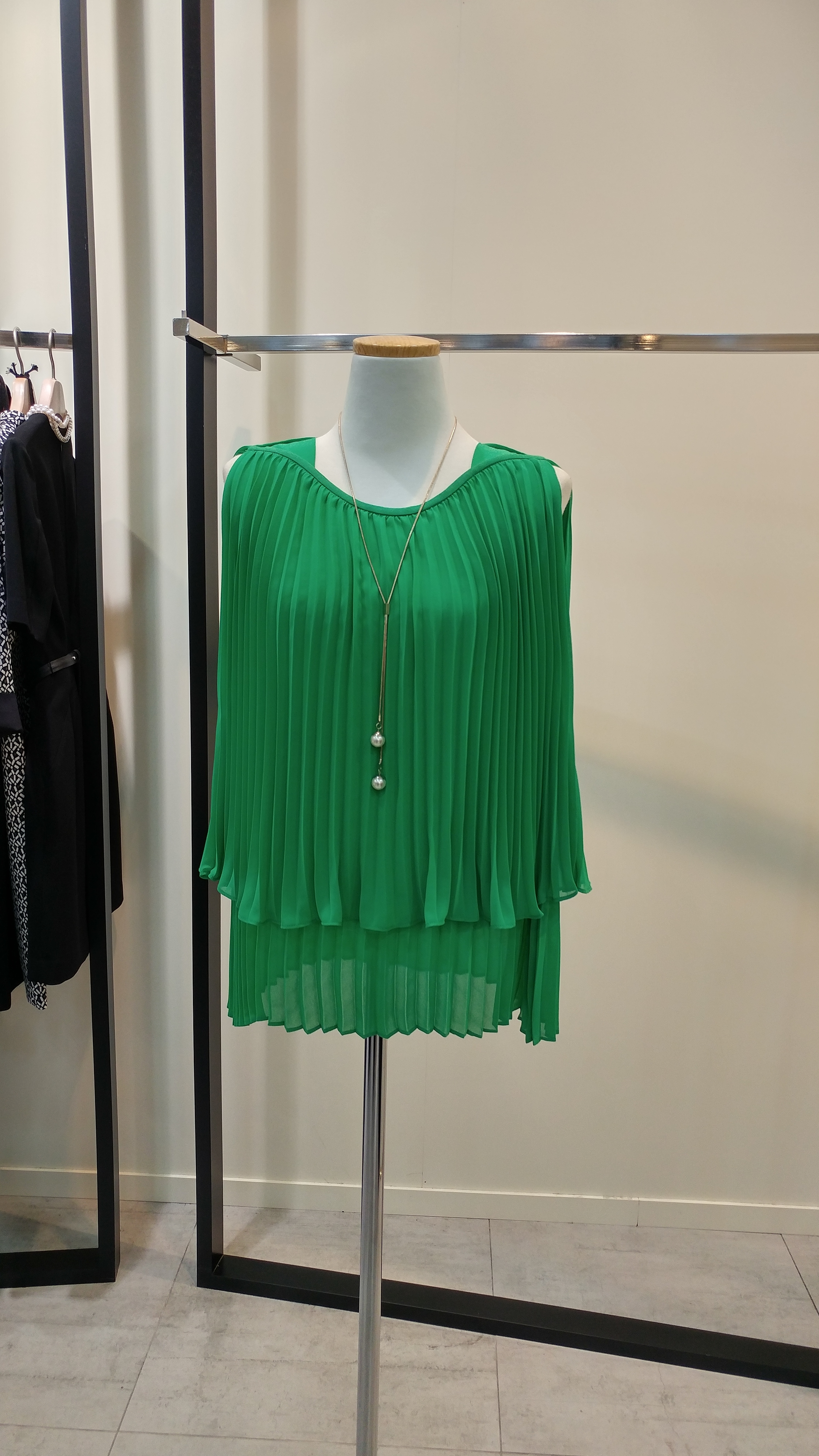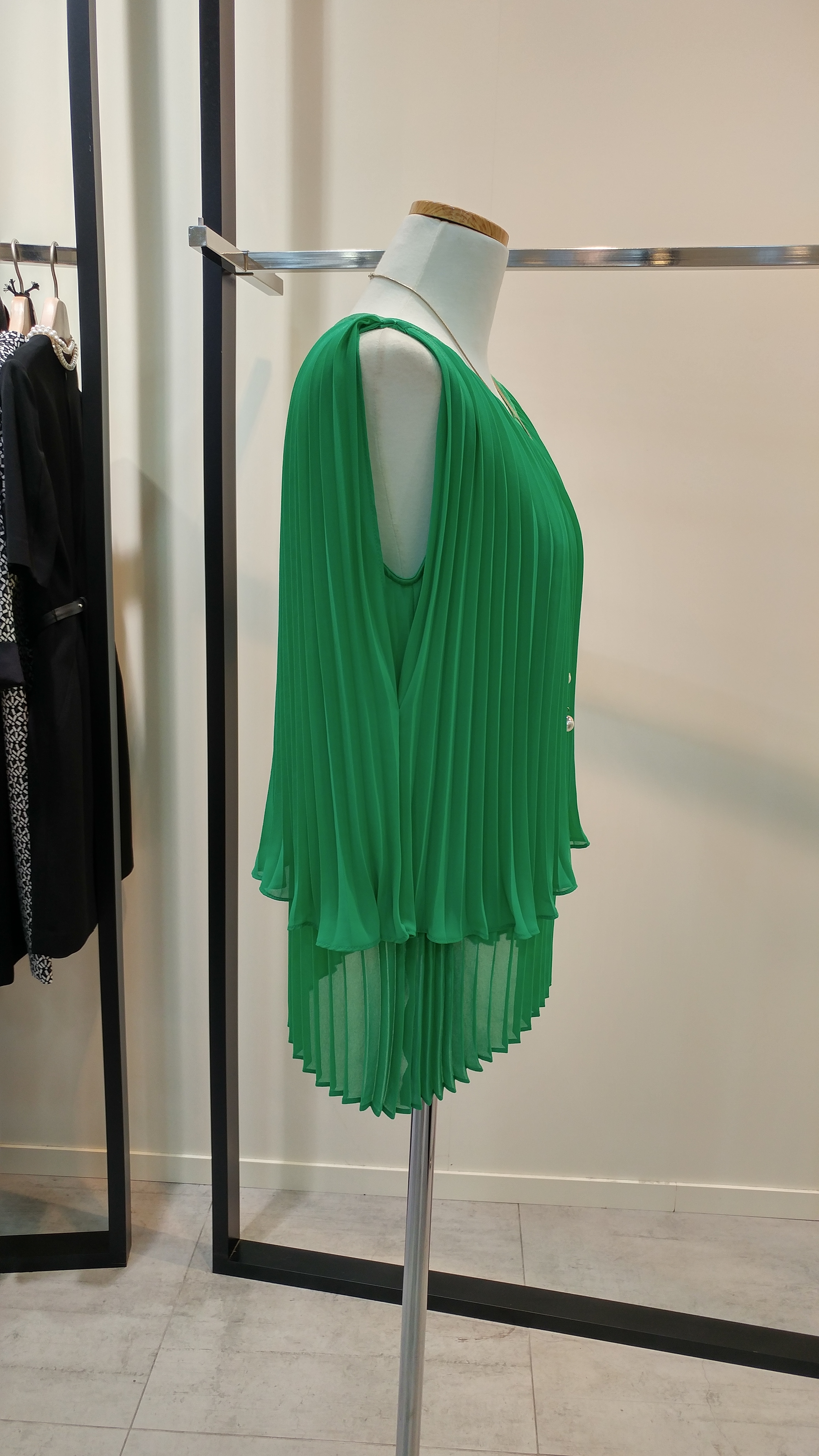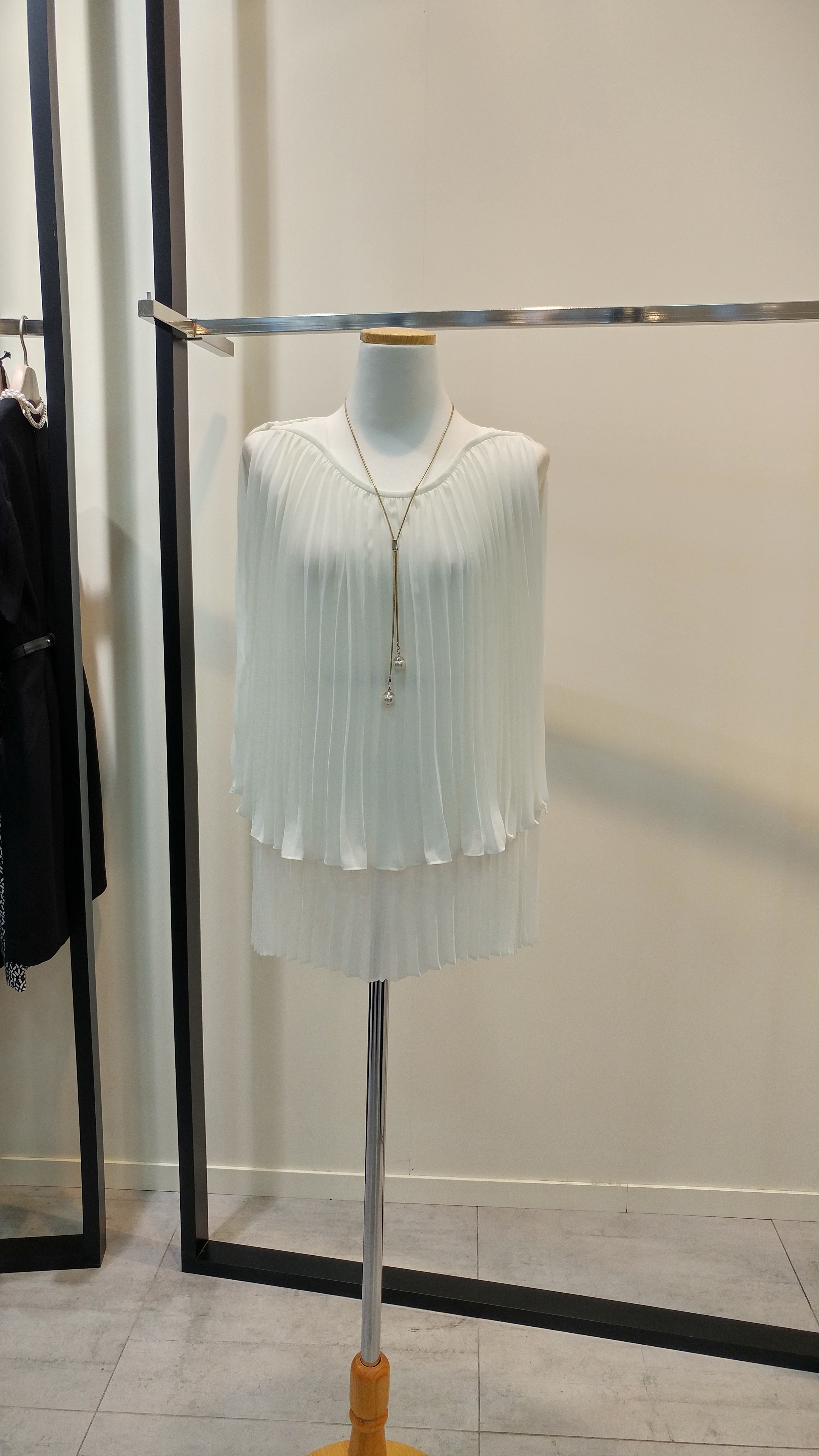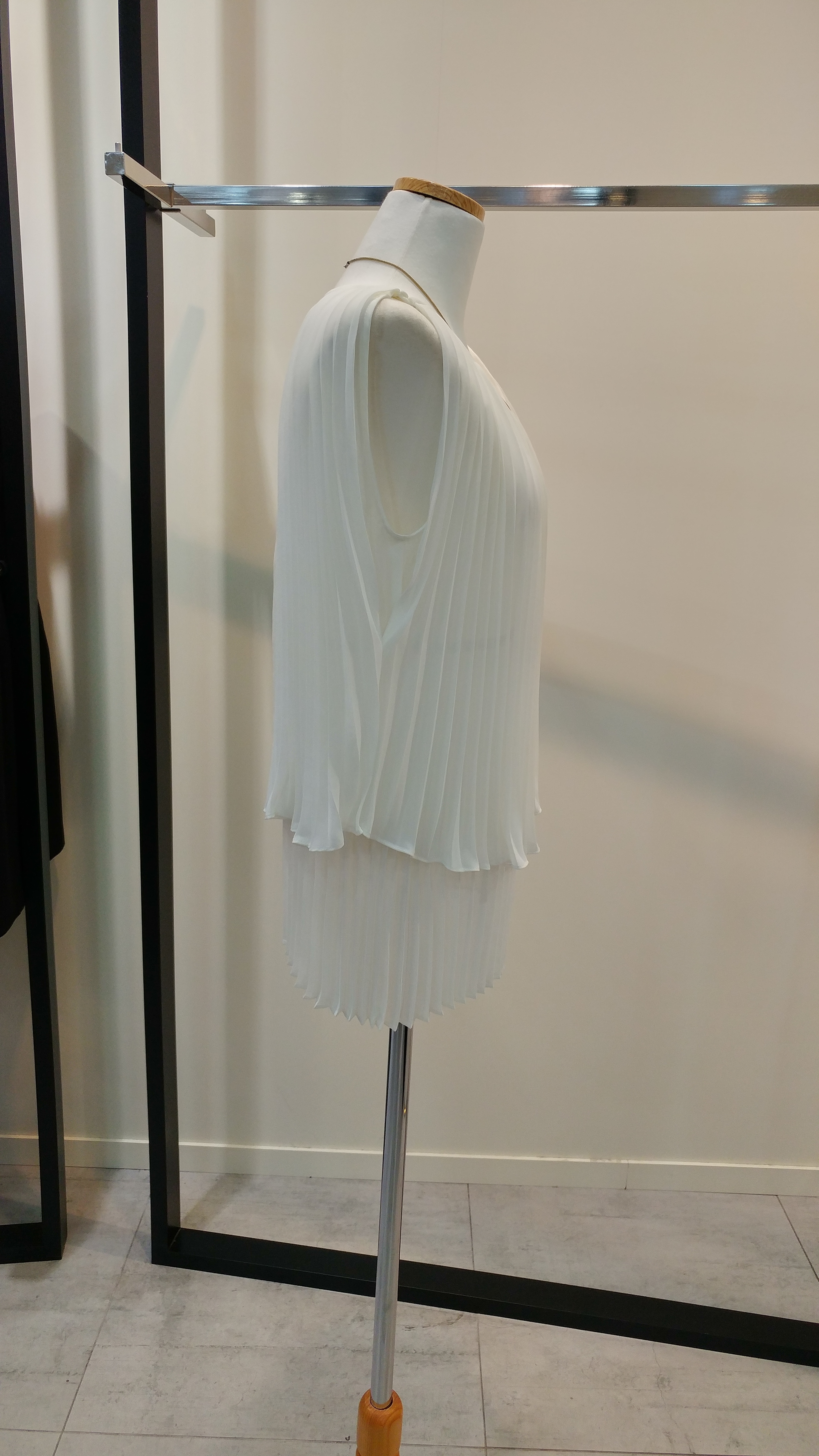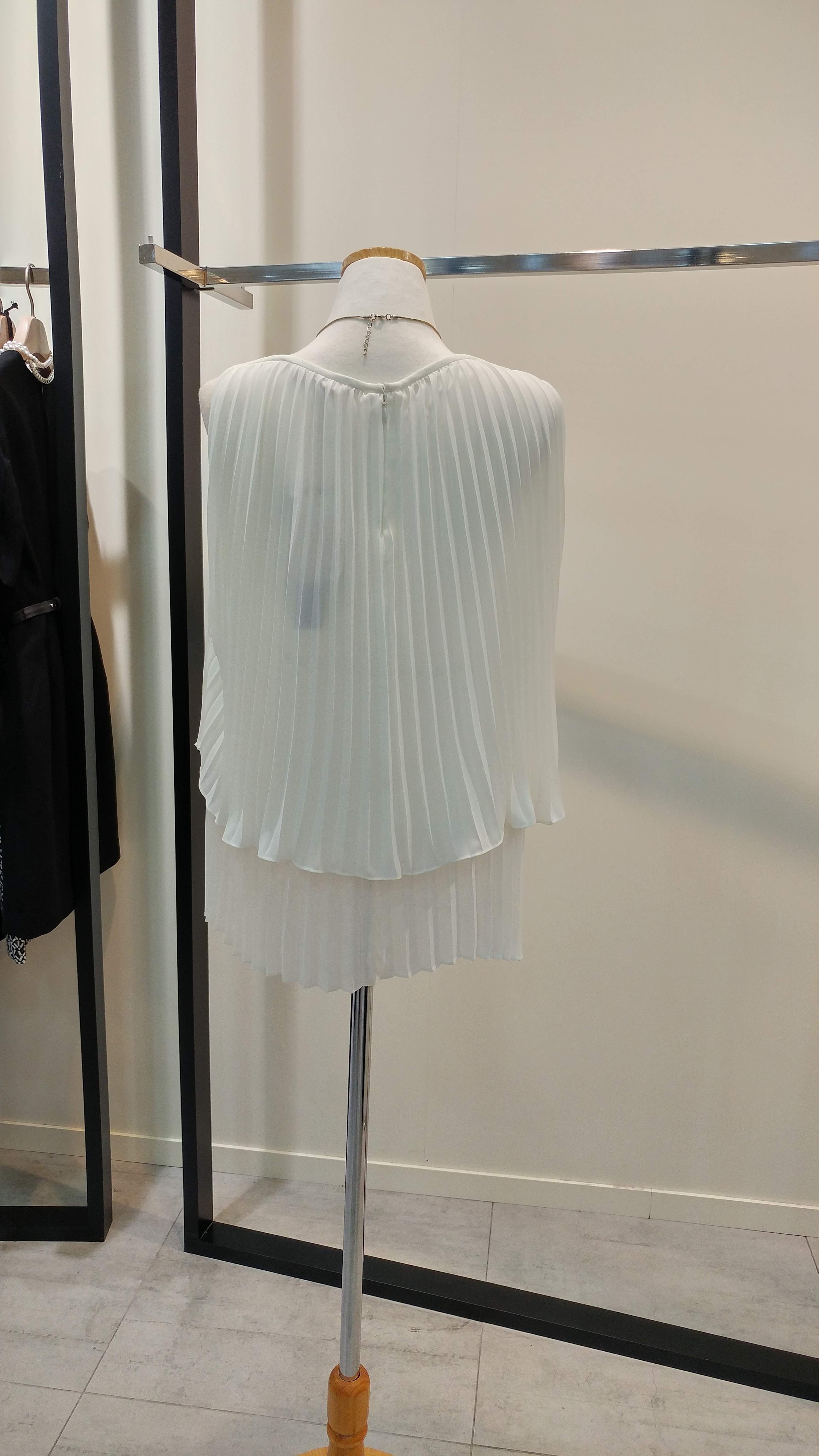쉬폰 민소매프리츠 블라우스입니다^^ 이단플리츠가포인트로  코디하기쉬우며 청량감이살아있는  스타일  총장58