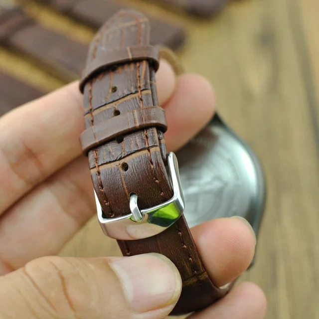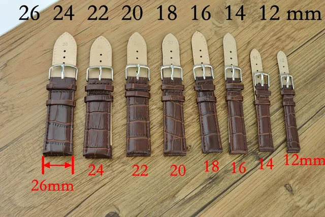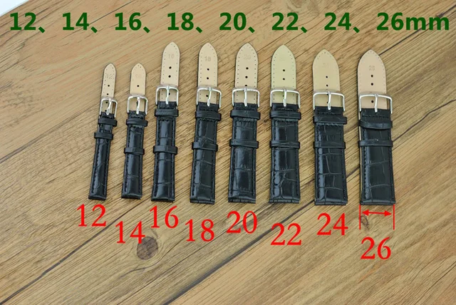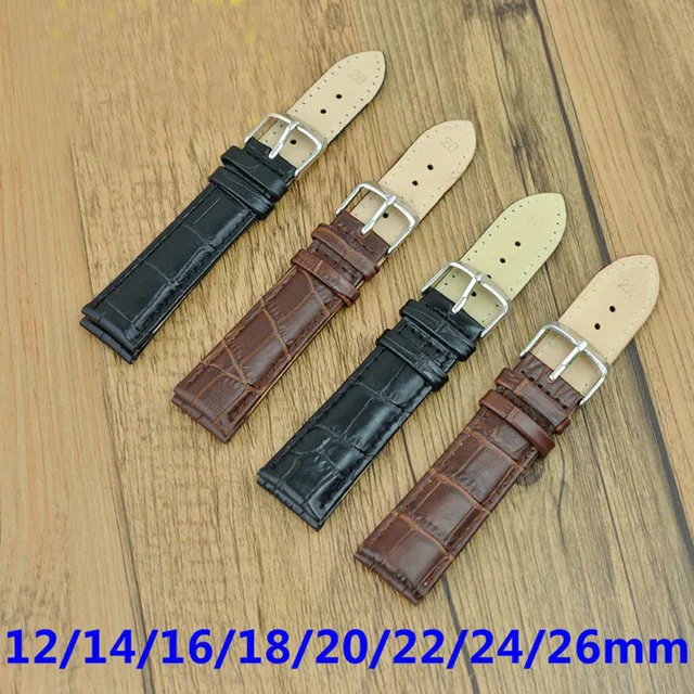 | [해외]14 16 18 20 22 24 미리메터 브라운 블랙 남성 가죽 일반 시계 스트랩, 복고풍 악어 양각 가죽 손목, 무료 시핑 |