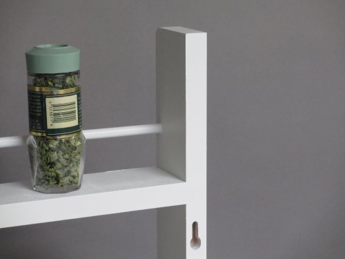 -. Feature : Size: 16"W x 18"H x 2-1/2"D / Holds spice jars up to 1-7/8" deep / Has a beautiful lacquer finish / Quality crafted in the USA from select northern hardwoods / Hidden keyhole slots make mounting invisible