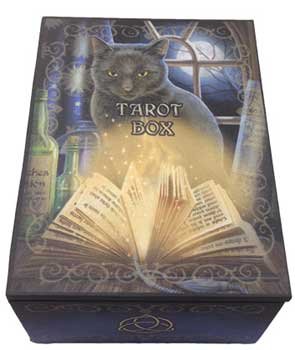 Studio : Azuregreen Publisher : Azuregreen Binding : Kitchen Product Description Bewitched tarot box, Lisa Parker design. A lovely little box that fits most tarot oracle decks, can also be used for trinkets, or small treasures. Felt lined interior and bottom. designed from the worlds leading Fantasy Artists. 5 1/2" x 4". 0