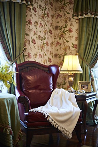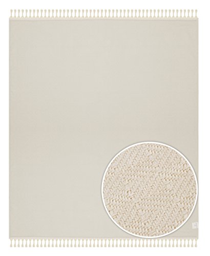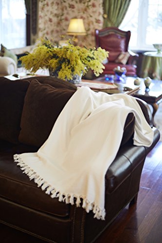 Ultra Soft All Natural Premium Bamboo Couch Sofa Bed Throw Blanket with Handmade Tassels- 92"L x 64"W (Natural / Ivory)