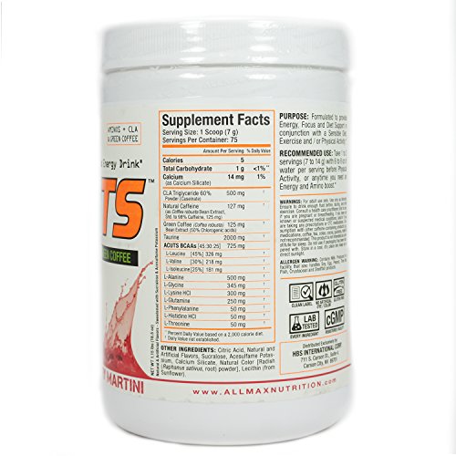 Aminos + CLA & Green Coffee Amino-Charged Energy Drink Taurine; Caffeine; CLA; Green Coffee 4.2 g Amino Acids Sugar-Free & Only 5 Calories! Green Coffee Extract & C.L.A. Natural-Source Caffeine Dietary Supplement 30 Servings cGMP Certified Facility Gluten Free Lab Tested - Every Ingredient Purpose: Formulated to provide Energy, Focus and Diet Support in conjunction with a Sensible Diet, Exercise and / or Physical Activity. Energy To Train, Aminos To Maintain And Diet Support! AminoCuts could be the most delicious drink mix we've ever made. Perfect to enjoy anytime; easy-to-mix, full of Aminos and loaded with ingredients like natural-source Caffeine, Taurine, C.L.A. and Green Coffee extract - AminoCuts is simple. On your way to do some Cardio? Need a mid-afternoon "pick-me-up"? AminoCuts fits your life.Feature