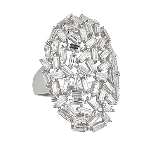 -. Binding : Jewelry -. Brand : Decadence -. Department : womens -. Feature : STERLING SILVER: This product is made of solid 925 Sterling Silver and each piece is carefully trademarked with the metal purity for certification. Each piece is stamped 925 and guarantees the quality and craft. / PLATING & COLOR: This ring is coated with the highest quality of rhodium, giving you long lasting durability and color. This allows the product to maintain its colors over long periods of time. / AVAILABLE SIZES: This ring is available in sizes 6, 7, 8, 9. -. Label : Decadence -. Manufacturer : Decadence -. Model : SZR4303W2W -. MPN : SZR4303W2W -. PartNumber : SZR4303W2W -. ProductGroup : Jewelry -. ProductTypeName : FASHIONRING -. Publisher : Decadence -. Studio : Decadence -. Title : Sterling Silver Rhodium Baguette Cut Cocktail Cubic Zirconia Ring