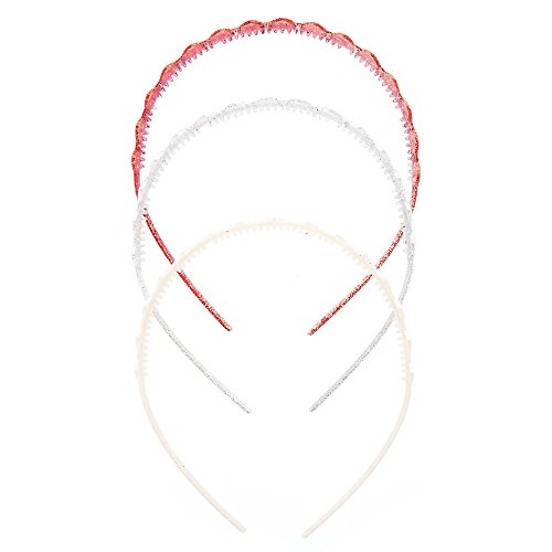Studio : Claire's Publisher : Claire's Binding : Apparel Product Description Give your little one's hair a touch of sparkly with this headband set. Thin headbands feature a heart design with glitter finish. Colors include one red, one silver and one white. Material: Plastic Teeth grips 3 Pc 0