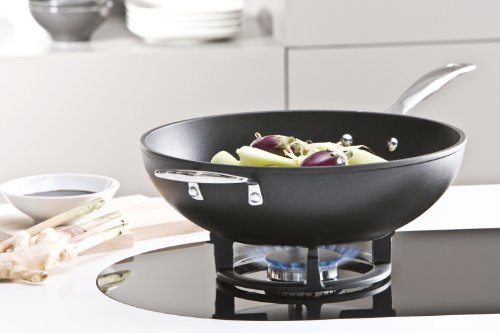 11 3/4-inch stir-fry pan made of forged hard-anodized stainless steel