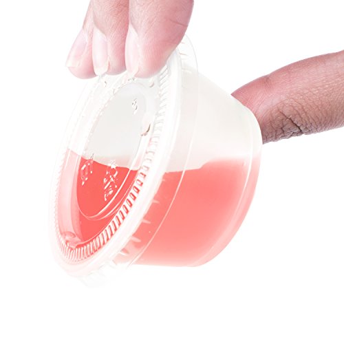 Clear Plastic Jello Shot & Condiment Sauce Disposable Cups with Lids for Restaurants, Party Supplies, Dips, Art Paint, Souffles (4 Ounce, 125 Pack)