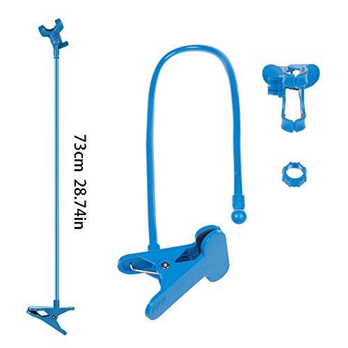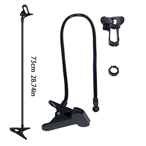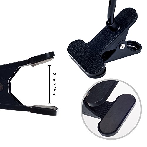 -. Feature : HANDS-FREE. With this lazy long arm cell phone holder stand, your hands are FREE to do anything while viewing your phone. If you have a plus or heavy smartphone We think it will best fit you. You can watch a video needn't hold it yourself. The relax time is coming. / FUNCTIONAL AND SECURE. The Cell Phone Holder could compatible with any smartphone or device up to 3.5" wide. Four claws with anti-slip foam holds your electronic device securely. The flexible arm can bend to any sharp you like. / STURDY AND EASY MOUNTED. The hard metal stand can clamp down on any surface up to 2.5" thick. Perfect to attach to your bed, chairs, tables, desks and the inside of your car as long as you can find a sturdy foundation. / EASY TO INSTALL. NO tools required to install. Take less than 1 mins. Please find the install instruction in the Product Description. / SIZE: 2.5" in total height; 2" length of the bendable arm. Made of extra thicken quality plastic, and anti-slip farm.