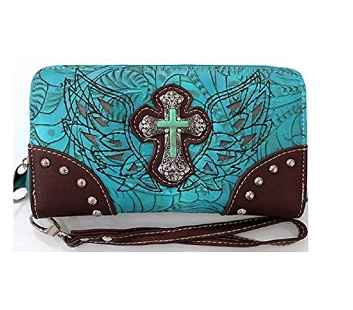 -. Title : HW Turquoise Cross Wings Western Zipper Wallet