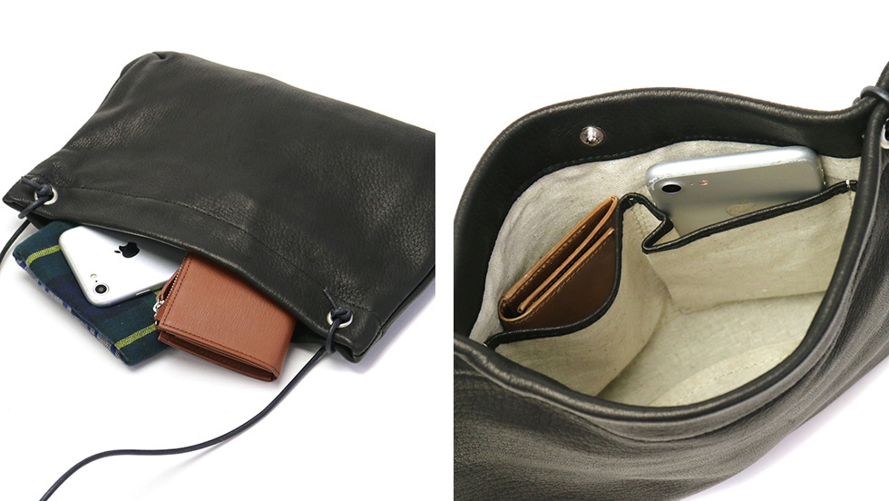 昔ながらの仕事の道具から着想を得てデザインされた「DEER」シリーズのショルダーバッグ。古くから武具にも使用されてきた鹿革を使用し、適度な伸縮・耐久性を備え、軽く、柔らかく、しなやかな質感が魅力のバッグです。