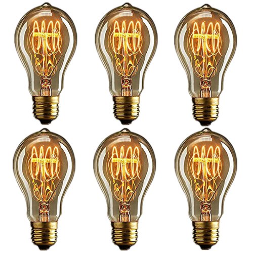 Edison Bulb, FadimiKoo Vintage Bulb 60W Dimmable A19 Squirrel Cage Filament Edison Lihgt Bulb For Home Light Fixtures Decorative, Pack of 6