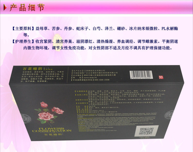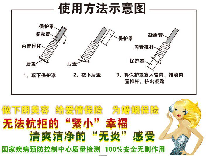 注意事项:百花缩阴四盒一个疗程,用过一个疗程绝对有意想不到的效果。使用方法: 先取出百花缩阴凝胶,晚上睡前使用,清洗双手及外阴卧躺在床上,将给药器推入阴道内6-7厘米,缓慢拉出同时缓缓挤出凝胶,每晚一支 20天是一个疗程。为了避免流出凝胶,建议使用后避免走动。