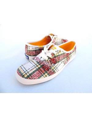 Product Description Go mad for plaid in this perfectly distressed print. Printed twill upper. Lace up sneaker. Two sets of laces: tonal satin and tonal flat. Soft breathable lining. Cushioned insole. Flexible, textured rubber outsole 0