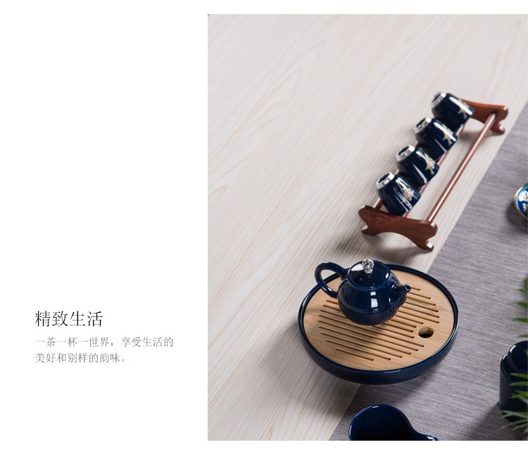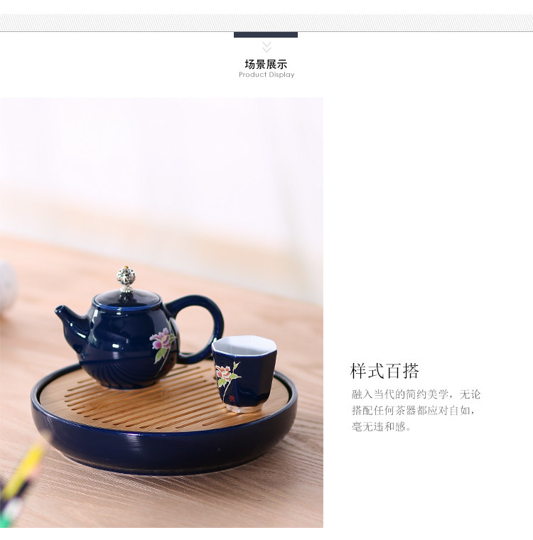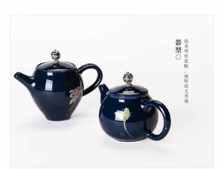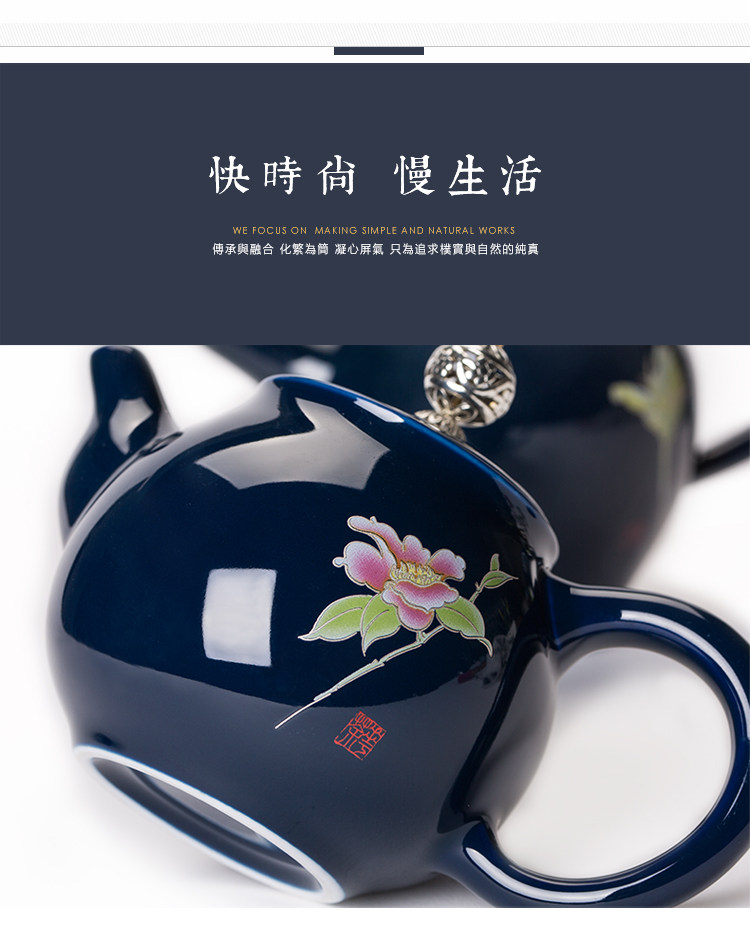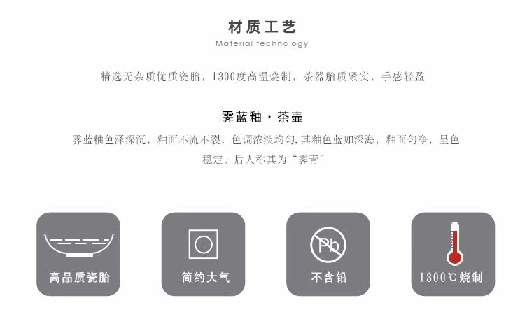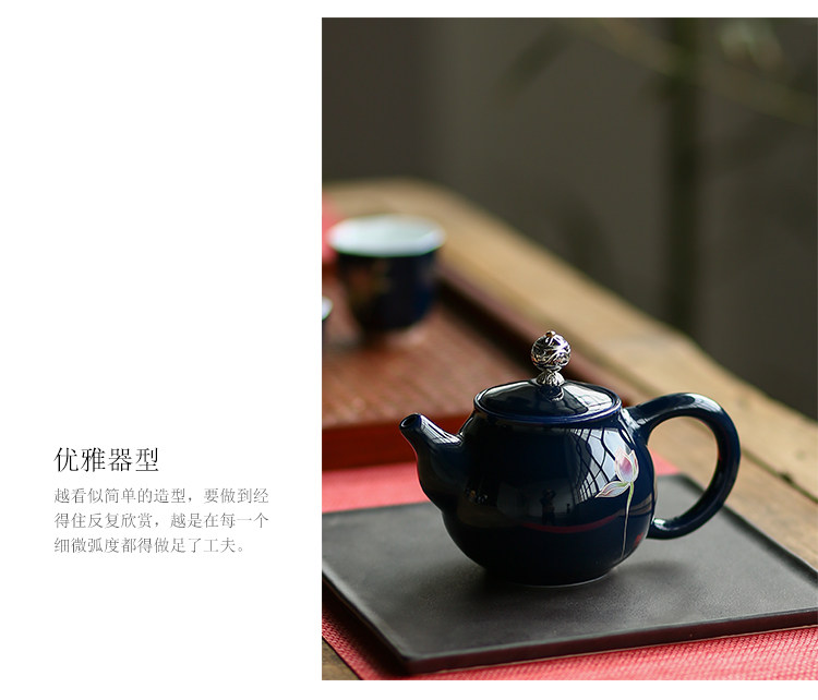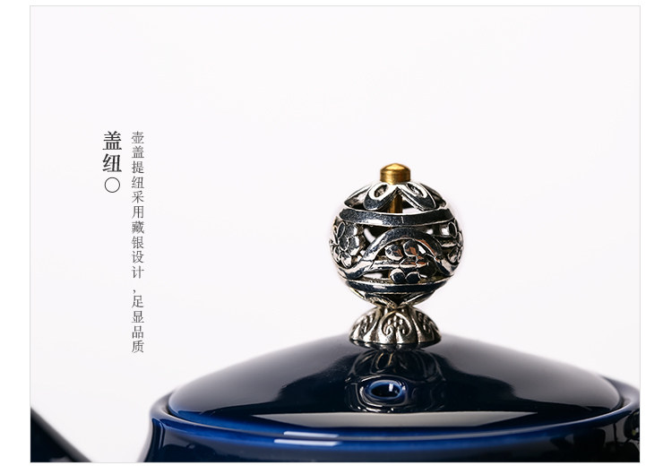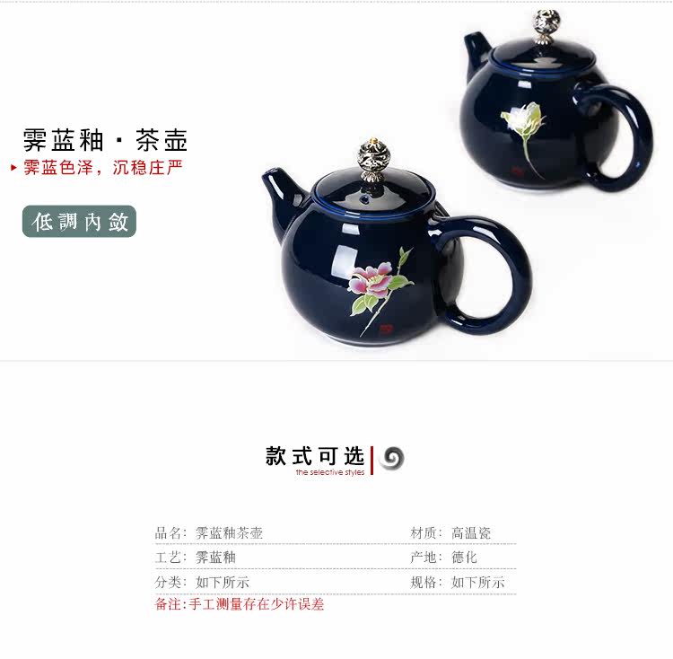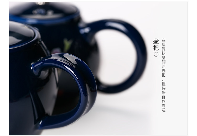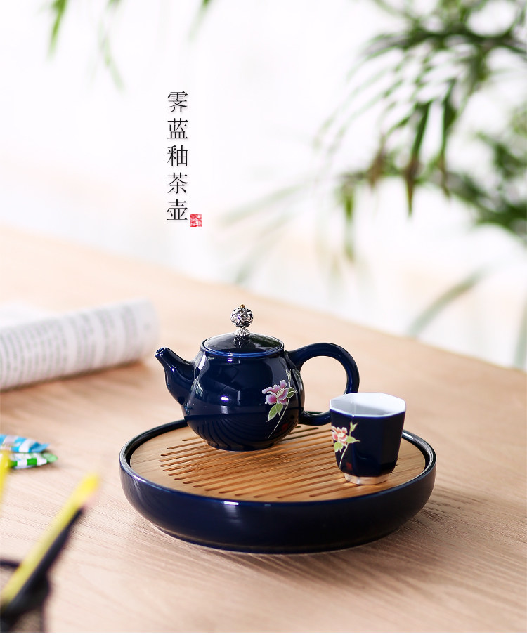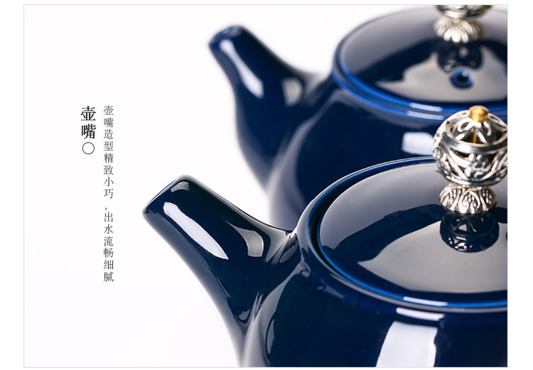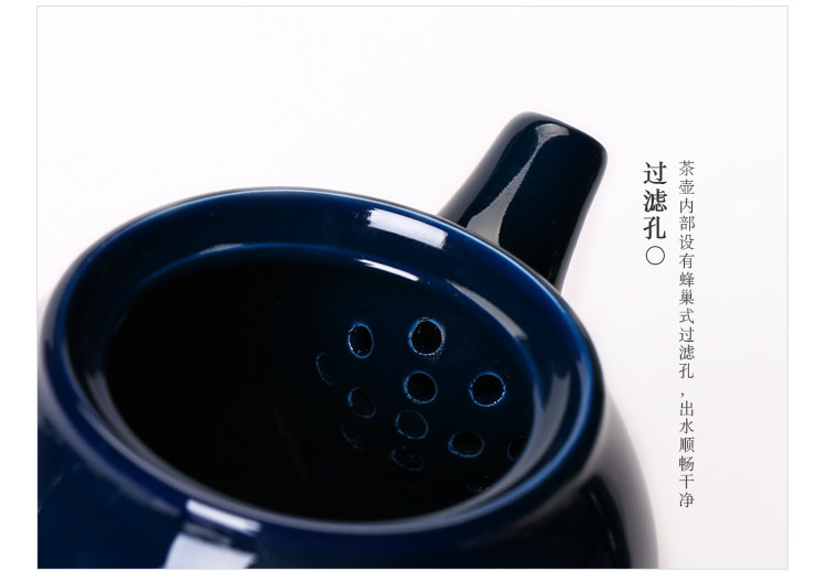 霁蓝釉茶壶 陶瓷功夫茶具泡茶器 办公家用过滤大号单茶壶