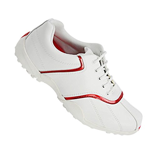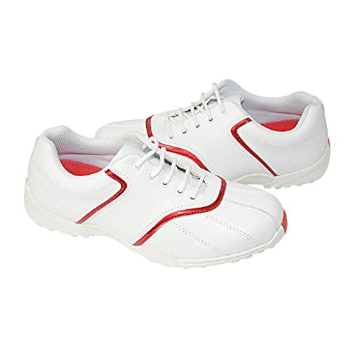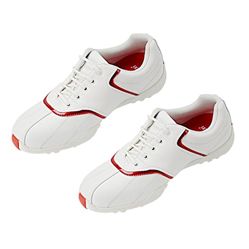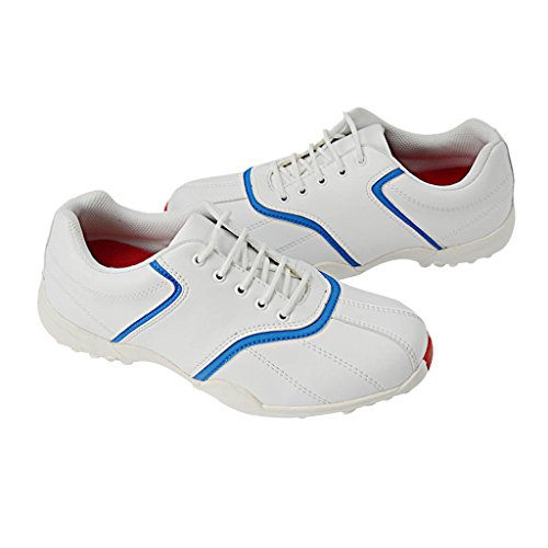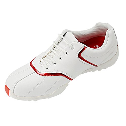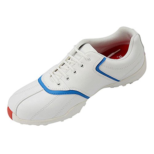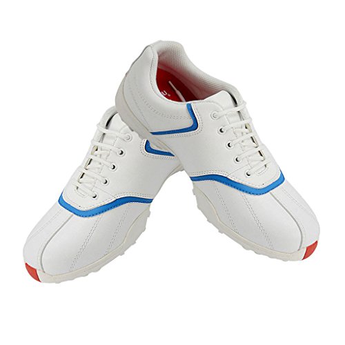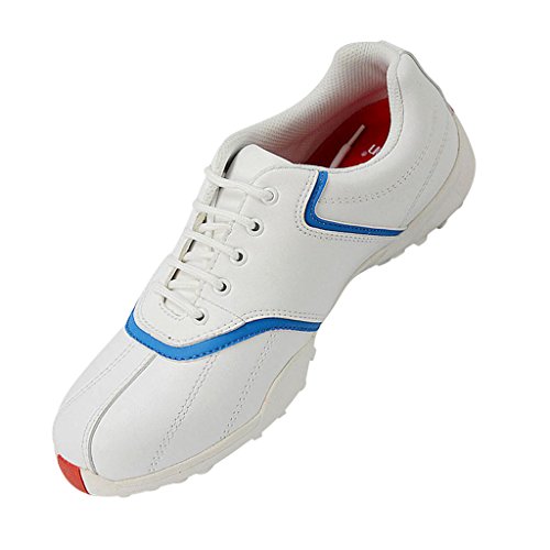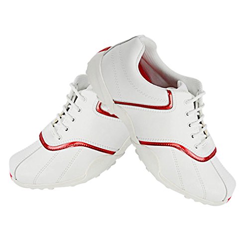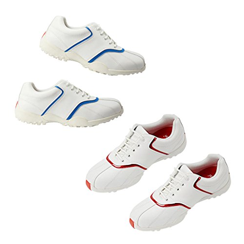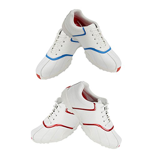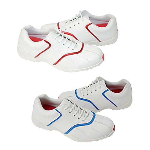 Description: - Premium Super fiber PU Leather and rubber sole - Simple design women golf shoes, breathable, non-slip, wear-resistant, waterproof - Lightweight performance technology, comfortable fit - Perfect for golf sports - Provide long lasting quality and durability Specification: - Material: Super Fiber PU Leather Rubber Mesh Cloth - Color: White Blue / White Red - Gender: Women Size Chart: EU 35 = US 5 = UK 3 EU 36 = US 5.5 = UK 3.5 EU 37 = US 6 = UK 4 EU 38 = US 6.5 = UK 4.5 EU 39 = US 7 = UK 5