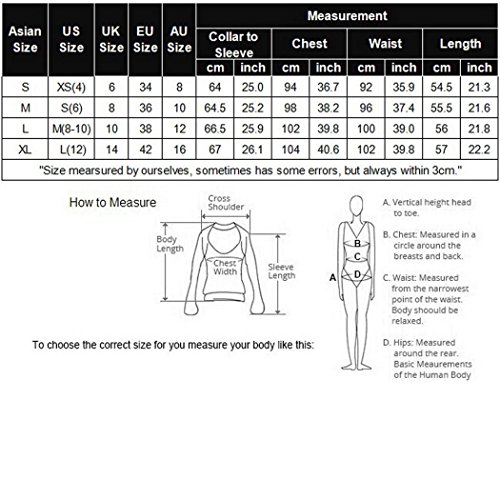 Size chart: Size S(4)----Collar to Sleeve:25.0"---Bust:36.7"---Waist:35.9"---Length:21.3" Size M(6)----Collar to Sleeve:25.2"---Bust:38.2"---Waist:37.4"---Length:21.6" Size L(8-10)-Collar to Sleeve:25.9"---Bust:39.8"---Waist:39.0"---Length:21.8" Size XL(12)--Collar to Sleeve:26.1"---Bust:40.6"---Waist:39.8"---Length:22.2" Warm Notice: 1). 1cm=0.39inch 2). Please double check your measurement before purchasing. 3). Please allow 1-3cm differs on size issue due to manual measurement. Package Content: 1 x Women Jackets 0