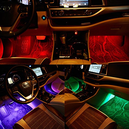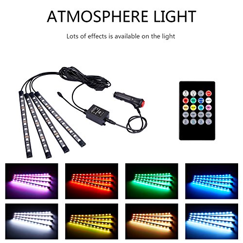 RGB LED Car Interior Light Kit: Wireless Music Remote Control enables you to change the color and adjust the brightness as you wish, also Sound-activated Function allows you to enjoy the fun with the color changing following your car stereo music rhythm as well as your voice.