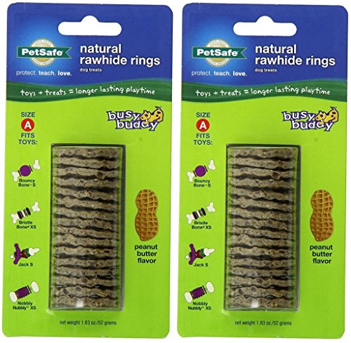 -. Title : (2 Pack) PetSafe Size A Busy Buddy Refill Ring Dog Treats for Select Busy Buddy Dog Toys, Peanut Butter Flavored Natural Rawhide