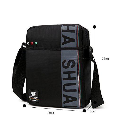 -. Feature : Material: Nylon / Size: 19cm(length)*6cm(thickness)*24cm(height) / 7.5*2.3*9.4 inch / Style: cross body/ single shoulder bag; Cool letter design / Adjustable shoulder strap for easy and comfortable carrying / Fits for iPad, key, wallet, purse, mobile phone, paper towels and other small items