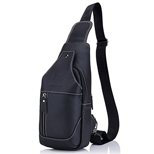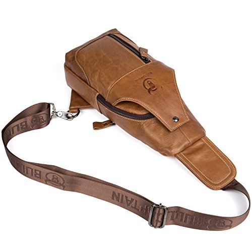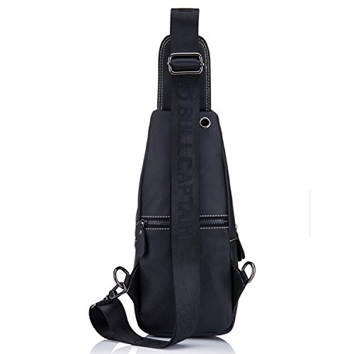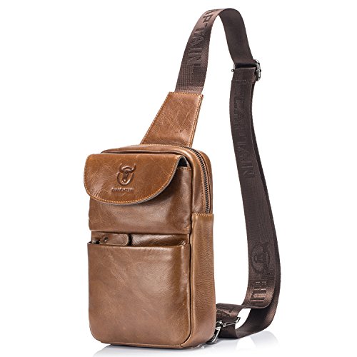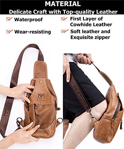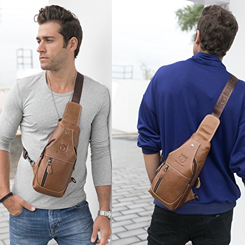 -. Title : Bull Captain Men Sling Bag Cow Leather Vintage Shoulder Backpack Cross Body Chest Bag For Men With Headphone Hole New019