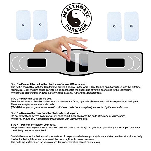 - Feature : FEATURES - 15 preprogrammed electronic pulse massager massage modes: 9 Auto Stimulation Programs (Neck, Shoulder, Back, Elbow, Hip, Ankle, Knee, Foot/hand, Wrist) with fully-adjustable speed & intensity; 6 Selectable Massage Settings (Knead, Acupuncture, Tap, Cupping, Scraping, Random), with high-frequency pulses to provide pain relief. 80 minutes timer: When time is due, it is automatically shut off. If you starts to use it again, please switch off and switch on the unit, 3 AAA batteries. / FEATURES - 20 levels of intensity and speed in 4 outputs. 4 outputs have the same 100% power, without reducing strength in half. Allows 2- 8 pads to be applied to the targeted areas at the same time; Easy to read animated back-lit LCD Display, Belt Clip; "Speed +" button increases frequency or "Speed -"button decreases frequency of mode. / EFFECTIVE - The advanced technology sends out multiple preset electrical therapeutic waves through the electrodes. These waves stimulate the combination of deep tissue pain relief techniques and various muscle movements, relieving muscle tension; Belt clip makes it portable, you can stimulate your nerves and muscles and relax your body-anytime anywhere; completely drug-free; the large LCD display with new featured backlight shows you at a glance exactly what you need for your targeted area. / WHAT IS IT? - Multibelt is an accessory which is good for abs, lower back, arms, legs, shoulder etc. to help blood circulation, pain relief and relaxation. You can move your belt around biceps, triceps, thighs, abs, lower back and the love handles to stimulate the fat tissue and firm the muscles. Size of belt stimulating area: 5"x 9", stretchable to fit arm, leg and waist for 10"L - 54" L.WHAT IS IT? - The Flexbelt has a built-in dual lead 3.5mm wire connector and is compatible with all of HealthmateForever models excluding HM body styles. Simply attach the included 4 Snap-On White Large Rectangle-Shaped Belt-Replacement Pads and wrap the belt around waist. The belt itself supports your lower back as the devices effect treat your core and/or lower back. A Velcro pouch in the front of the belt allows for easy storage of your device. / WHY CHOOSE US? - HealthmateForever is the #1 brand for the pain relief device, which has exceed 50 kinds of Tens Unit on Amazon; More than 10 thousand 5 stars customer reviews in all on Amazon; High quality - doctor recommended; Portable and easy to use; 100 percent drug-free; Safe and effective for home use (FDA cleared & Lifetime Warranty).
