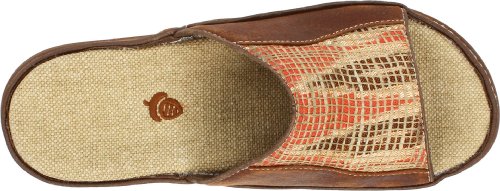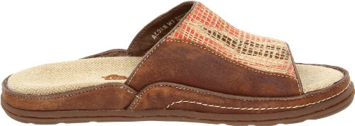 The fashionable Acorn Hadly Slide sandals feature natural cotton uppers with original print design. Silk/cotton blend overlay on upper. Durable waxy leather detail. Uppers lined in quick drying, breathable microfiber. Footbed lined in durable cotton/jute canvas for cool comfort. Footbed of molded EVA - fully contoured with anatomic arch support. The Acorn Hadly Slide features a new lightweight and flexible outsole of rubber hand-pressed with natural jute.